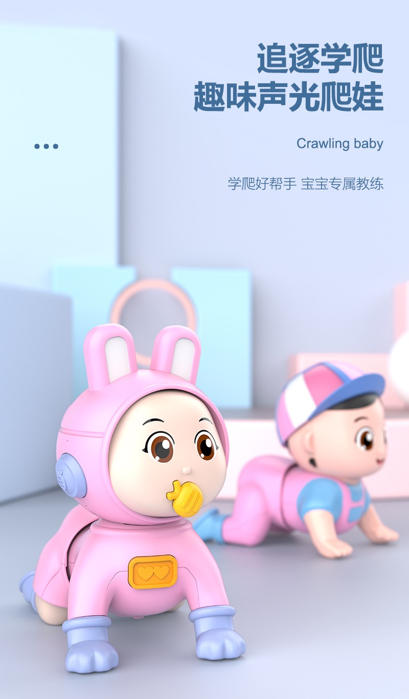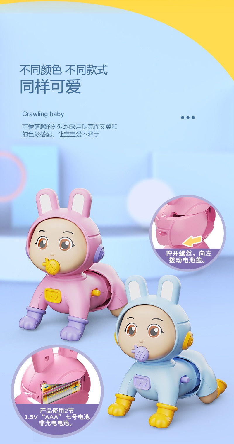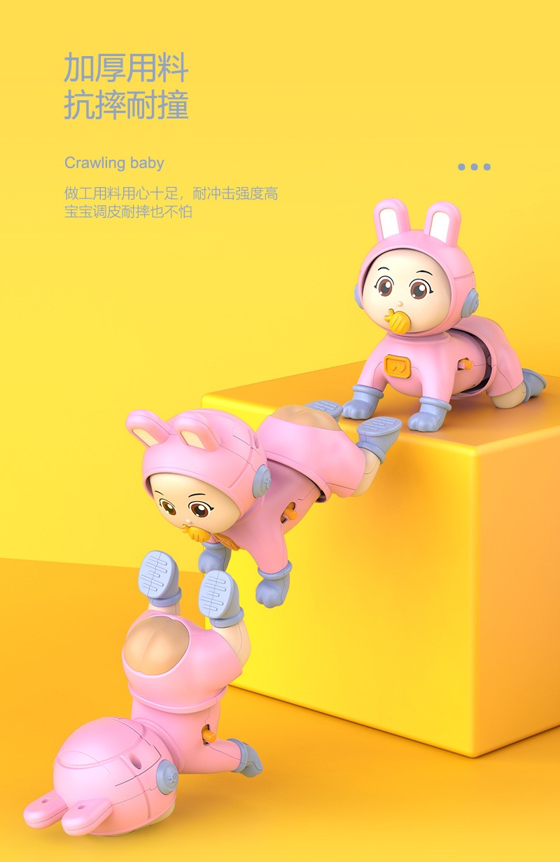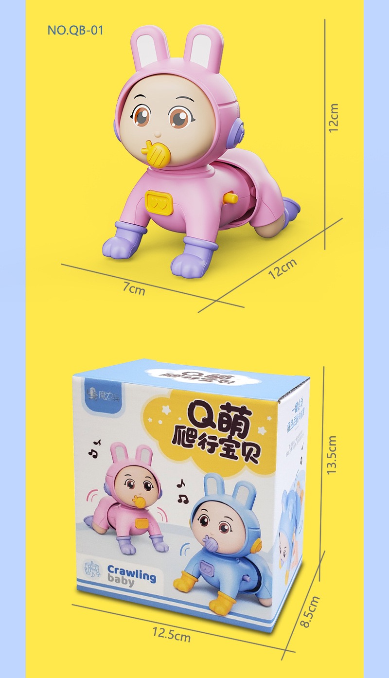Khi khởi động, búp bê sẽ tự động thực hiện động tác bò về phía trước một cách nhịp nhàng.