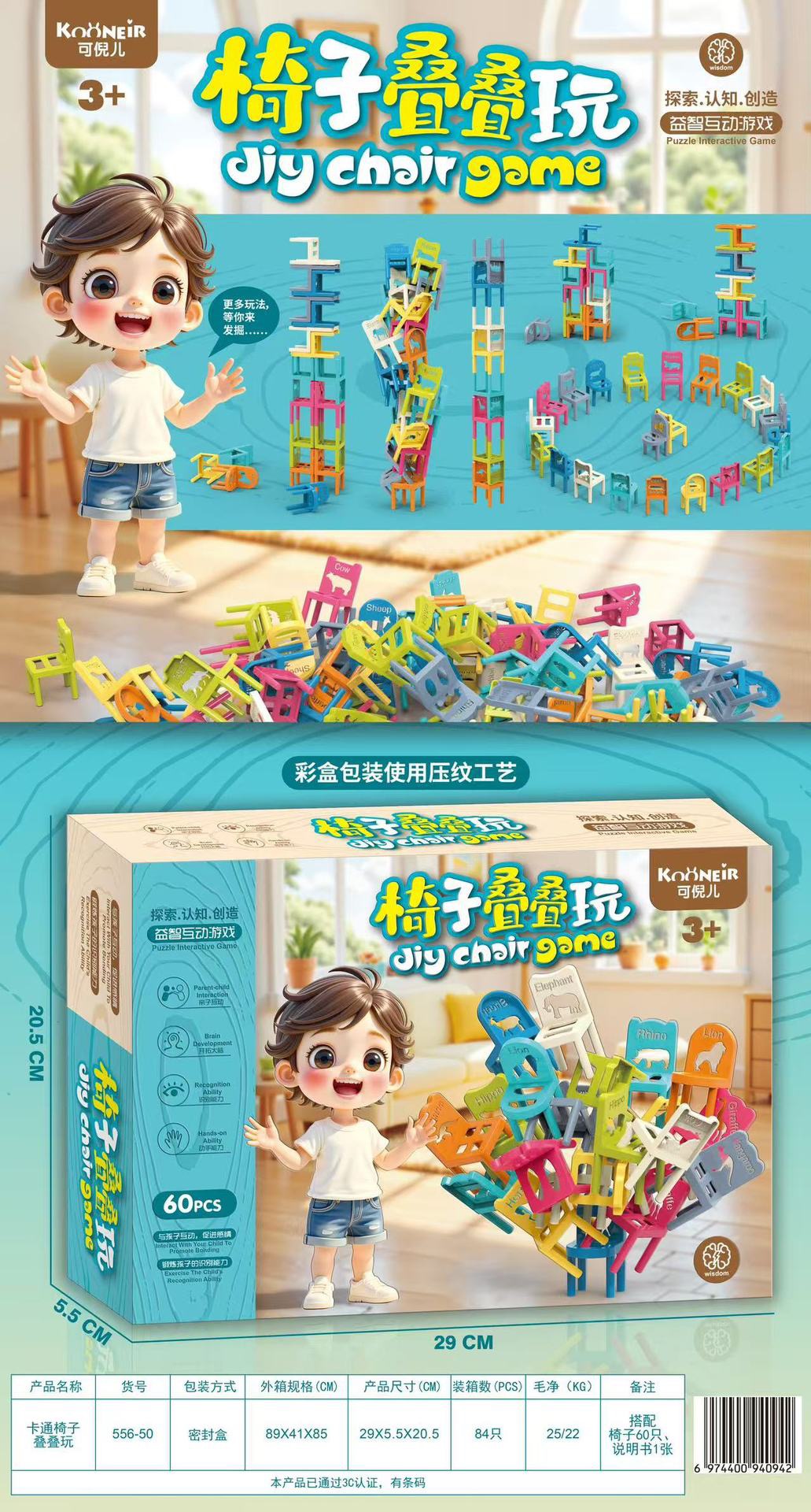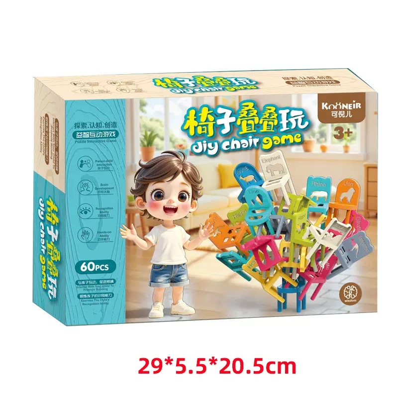 Trò chơi tương tác nhóm: Bé có thể chơi một mình hoặc thi đấu cùng bạn bè, người thân để xem ai là người đặt chiếc ghế cuối cùng mà không làm sập tháp.