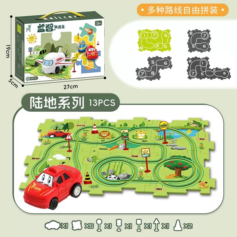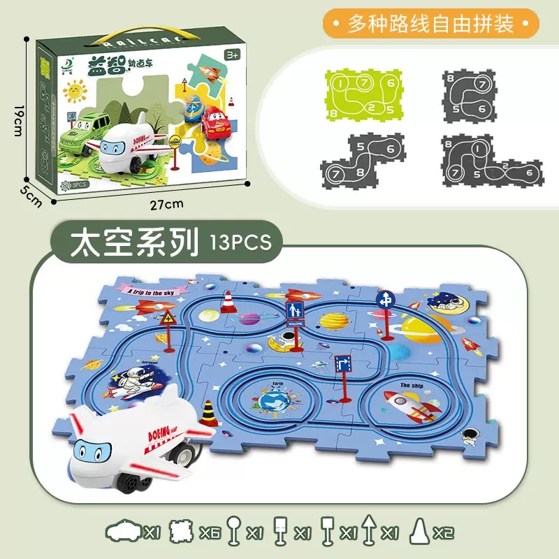 Hệ thống đường đua lắp ghép: Mỗi bộ sản phẩm bao gồm các mảnh ghép răng cưa thông minh, cho phép bé tự do sáng tạo và thay đổi hình dáng đường đua theo ý thích.