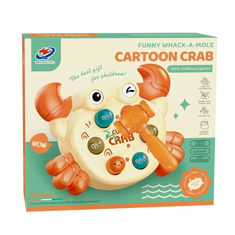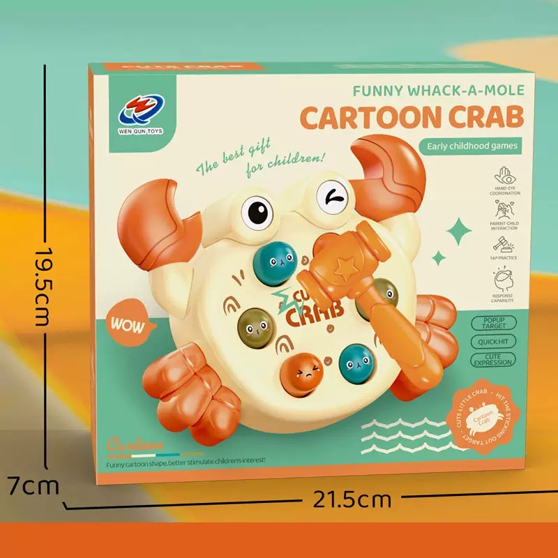 6 nút bấm sinh động: Trên lưng chú cua tích hợp 6 nút bấm với 3 màu sắc (cam, xanh dương, xanh lá) và các biểu cảm khuôn mặt khác nhau, tạo sự thu hút cho trẻ.