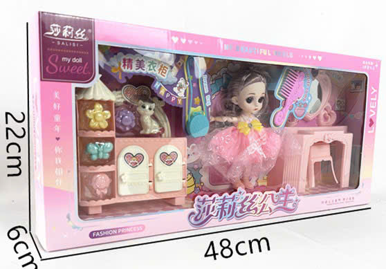 Công dụng & Lợi ích: Giúp bé hình thành thói quen ngăn nắp khi sắp xếp đồ đạc và phát triển tư duy thẩm mỹ, chăm sóc cá nhân qua việc chơi cùng búp bê.